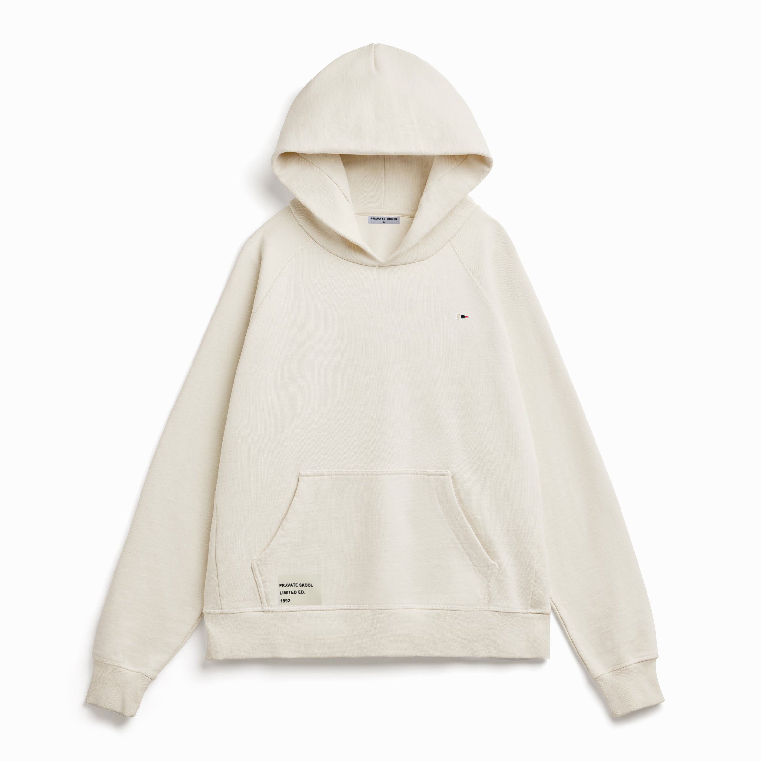 This hooded sweatshirt is adorned with the Pryvate Skool embroidered flag on the chest.